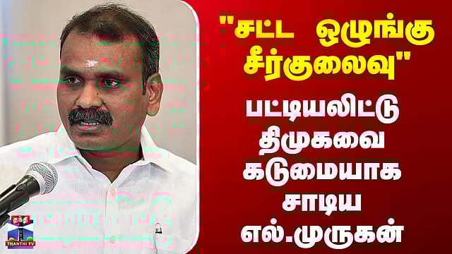 "சட்ட ஒழுங்கு சீர்குலைவு" - பட்டியலிட்டு திமுகவை கடுமையாக சாடிய எல்.முருகன் #lmurugan #dmk #tnpolitics #election2026 #thanthitv சட்டம் - ஒழுங்கு சீர்குலைவு- அமைச்சர் எல்.முருகன் விமர்சனம் தமிழகத்தில் சட்டம் ஒழுங்கு சீர்குலைந்திருப்பதாக மத்திய இணை அமைச்சர் எல்.முருகன் விமர்சித்துள்ளார்