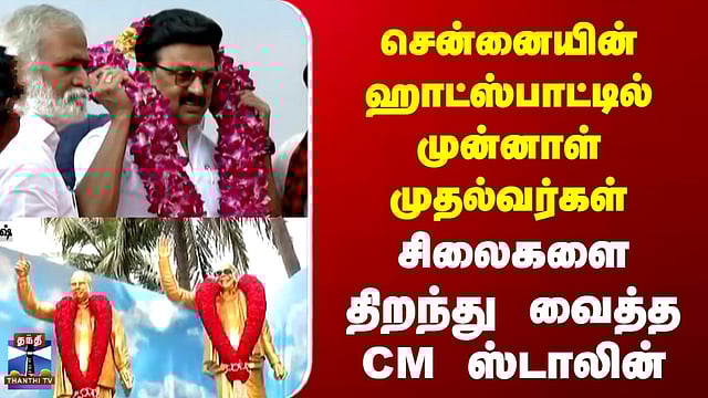 CM Stalin | DMK | சென்னையின் ஹாட்ஸ்பாட்டில் முன்னாள் முதல்வர்கள் சிலைகளை திறந்து வைத்த CM ஸ்டாலின் #CMStalin #DMK #karunanidhi #Anna #TNPolitics #thanthitv முன்னாள் முதலமைச்சர்கள் அண்ணா, கருணாநிதி சிலை திறப்பு முதலமைச்சர் ஸ்டாலின், சென்னை போரூர் சந்திப்பில் நிறுவப்பட்டுள்ள முன்னாள் முதலமைச்சர்கள் அண்ணா மற்றும் கருணாநிதி ஆகியோரின் முழுஉருவ வெண்கல சிலைகளை திறந்து வைக்கிறார்...