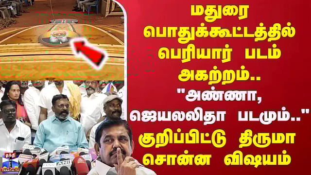 மதுரை பொதுக்கூட்டத்தில் பெரியார் படம் அகற்றம்.. "அண்ணா, ஜெயலலிதா படமும்.." குறிப்பிட்டு திருமா சொன்ன விஷயம்
