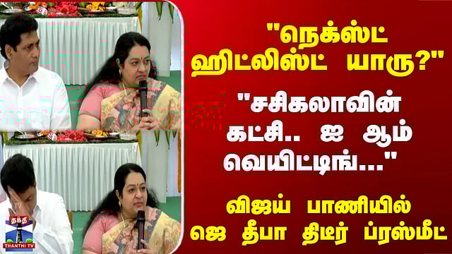 Mic Check | "சசிகலாவின் கட்சி.. ஐ ஆம் வெயிட்டிங்..." விஜய் பாணியில் ஜெ தீபா திடீர் ப்ரஸ்மீட் சென்னையில் செய்தியாளர்களிடம் பேசிய ஜெ தீபா, சசிகலா ஆரம்பிக்கும் கட்சிக்காக தான் வெயிட்டிங் எனக்கூறி, விஜய் பாணியில் பதிலளித்தார்...