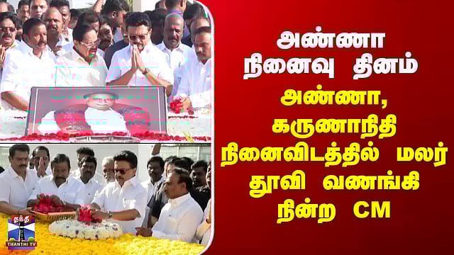 MK Stalin | அண்ணா நினைவு தினம் - அண்ணா, கருணாநிதி நினைவிடத்தில் மலர் தூவி வணங்கி நின்ற முதல்வர்