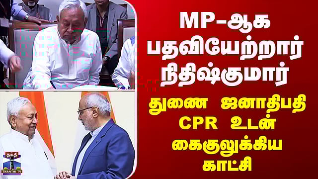 MP-ஆக பதவியேற்றார் நிதிஷ்குமார் - துணை ஜனாதிபதி CPR உடன் கைகுலுக்கிய காட்சி