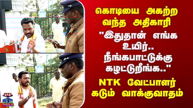 தேர்தல் பறக்கும் படையினருடன் நாம் தமிழர் வேட்பாளர் கடும் வாக்குவாதம் உதகையில் தேர்தல் பறக்கும் படை அதிகாரிகளுடன் நாம் தமிழர் கட்சி வேட்பாளர் ரகுபதி பீமன் கடும் வாக்குவாதத்தில் ஈடுபட்டதால் பரபரப்பு ஏற்பட்டது. கோத்தகிரி அருகே வாகன சோதனையின் போது, உரிய அனுமதியின்றி வாகனத்தில் கட்டப்பட்டிருந்த கட்சி கொடியை அகற்ற அதிகாரிகள் அறிவுறுத்தினர். ஆனால், அனுமதி பெறுவதற்கு தேர்தல் ஆணையத்தின் செயலி (App) செயல்படவில்லை எனக் கூறி, நாம் தமிழர் வேட்பாளர் அதிகாரிகளுடன் ஆவேசமாக மல்லுக்கட்டினார். நீண்ட நேர போராட்டத்திற்குப் பிறகு, கட்சி கொடி அகற்றப்பட்டதை அடுத்து பிரச்சனை முடிவுக்கு வந்தது.