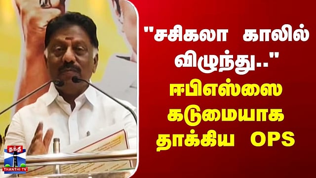 OPS | EPS | AIADMK | "சசிகலா காலில் விழுந்து.." - ஈபிஎஸ்ஸை கடுமையாக தாக்கிய OPS #theni #ops #eps #aiadmk #dmk #thanthitv தேனி மாவட்டம், போடிநாயக்கனூரில் நடைபெற்ற திமுக நிர்வாகிகள் கூட்டத்தில் பேசிய, முன்னாள் முதலமைச்சர் ஓ. பன்னீர்செல்வம், அதிமுக பொதுச்செயலாளர் எடப்பாடி பழனிசாமியை கடுமையாக விமர்சித்தார். திமுக நிர்வாகிகள் கூட்டத்தில் பங்கேற்ற ஓபிஎஸ்-க்கு, செண்டை மேளம் மற்றும் வானவேடிக்கை முழங்க உற்சாக வரவேற்பு அளிக்கப்பட்டது. பிறகு பேசிய அவர் மறைந்த முதலமைச்சர் ஜெயலலிதா தனக்கு அளித்த பதவிகளை அவரிடமே ஒப்படைத்து தனது விசுவாசத்தைக் காட்டினேன். ஆனால், சசிகலா காலில் விழுந்து முதலமைச்சர் பதவியைப் பெற்ற எடப்பாடி பழனிசாமி, இன்று எவ்வித நன்றியும் இல்லாமல் செயல்படுகிறார் என கடுமையாக சாடினார்.
