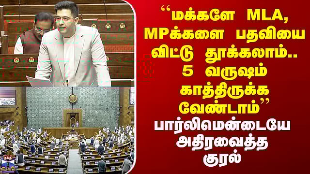 Parliament | ``மக்களே MLA, MPக்களை பதவியை விட்டு தூக்கலாம்.. 5 வருஷம் காத்திருக்க வேண்டாம்’’ #parliament #democracy #election "செயல்படாத எம்பிக்கள், எம்எல்ஏக்களை வாக்காளர்கள் ஏன் திரும்ப பெற கூடாது? " இந்தியாவில் மக்களால் தேர்ந்தெடுக்கப்படும் எம்எல்ஏக்கள், எம்பிக்கள் மீது அதிருப்தி ஏற்பட்டால் மக்கள் அவர்களை திரும்பப் பெறும் முறையை அறிமுகப்படுத்தக் கோரி ஆம் ஆத்மி கட்சியின் உறுப்பினர் ராகவ் சதா மாநிலங்களவையில் வலியுறுத்தியுள்ளார். தற்போது ஒருமுறை தேர்ந்தெடுக்கப்பட்டால் ஐந்தாண்டுகள் நிறைவடையும் வரை செயல்படாத தங்களது பிரதிநிதியை மாற்ற மக்களுக்கு வாய்ப்பு இல்லாமல் இருப்பதை சுட்டிக்காட்டிய அவர், இது இந்தியாவின் தேர்தல் ஜனநாயகத்தில் உள்ள ஒரு முக்கிய குறைபாடு என்றும் கூறினார். மேலும், உலகில் கனடா , சுவிட்சர்லாந்து உள்ளிட்ட 24 ஜனநாயக நாடுகளில் அதிருப்தி ஏற்பட்டால் தங்கள் பிரதிநிதிகளை மக்கள் திரும்பப் பெரும் முறை அமலில் இருப்பதையும் அவர் சுட்டிக் காட்டியுள்ளார்.