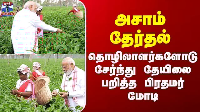 PM Modi Campaign | அசாம் தேர்தல் - தொழிலாளர்களோடு சேர்ந்து தேயிலை பறித்த பிரதமர் மோடி