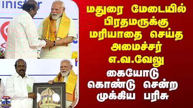 PM Modi Madurai Visit | மதுரை மேடையில் பிரதமருக்கு மரியாதை செய்த அமைச்சர் எ.வ.வேலு