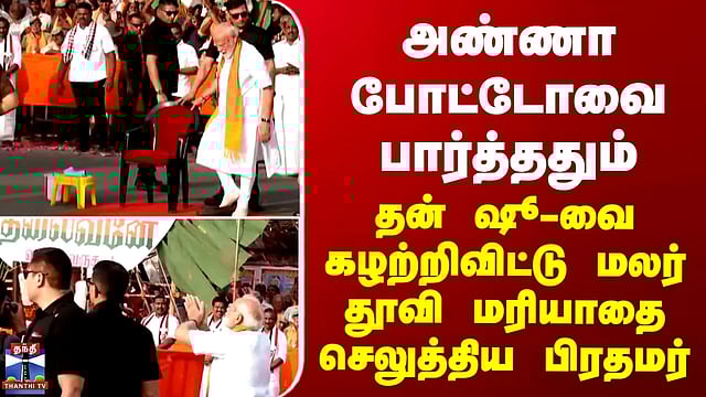 TN Election 2026 | அண்ணா போட்டோவை பார்த்ததும் தன் ஷூ-வை கழற்றிவிட்டு மலர் தூவி மரியாதை செலுத்திய பிரதமர்