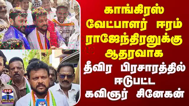 Congress | காங்கிரஸ் வேட்பாளர் ஈரம் ராஜேந்திரனுக்கு ஆதரவாக தீவிர பிரசாரத்தில் ஈடுபட்ட கவிஞர் சினேகன்