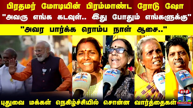 #pmmodi | #pmmodiroadshow | #puducherry | #thanthitv PM Modi Road Show | Puducherry | பிரதமர் மோடியின் பிரம்மாண்ட ரோடு ஷோ..பொதுமக்கள் நெகிழ்ச்சி