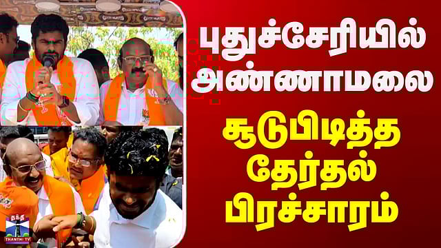 புதுச்சேரியில் அண்ணாமலை.. சூடுபிடித்த தேர்தல் பிரச்சாரம் #puducherry #bjp #annamalai #politics #election2026 #thanthitv புதுச்சேரியில் திமுக-காங்., கூட்டணியில் ஒற்றுமை இல்லை - அண்ணாமலை புதுச்சேரி ராஜ்பவன் தொகுதி பாஜக வேட்பாளர் ராமலிங்கத்தை ஆதரித்து அண்ணாமலை தீவிரப் பிரச்சாரம் மேற்கொண்டார். இதில் பேசிய அவர், புதுச்சேரியில் திமுக - காங்கிரஸ் இடையே ஒற்றுமை இல்லை எனச் சாடினார்.