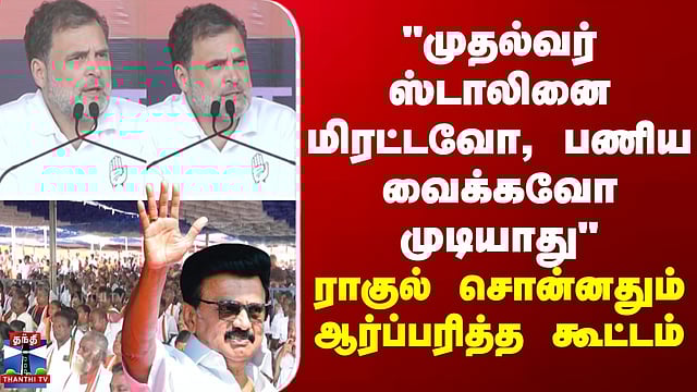 Rahulgandhi "முதல்வர் ஸ்டாலினை மிரட்டவோ, பணிய வைக்கவோ முடியாது"-ராகுல் சொன்னதும் ஆர்ப்பரித்த கூட்டம்