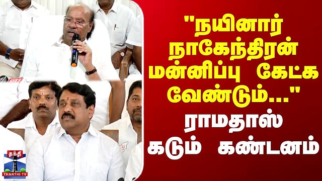 நயினார் நாகேந்திரன் பேச்சுக்கு ராமதாஸ் கண்டனம் நடிகை பற்றிய கருத்துக்கு பாஜக மாநில தலைவர் நயினார் நாகேந்திரன் மன்னிப்பு கேட்க வேண்டும் என ராமதாஸ் வலியுறுத்தினார். நடிகையை குறிப்பிட்டு விஜயை நயினார் நாகேந்திரன் விமர்சித்த விவகாரம் சர்ச்சையை ஏற்படுத்திய நிலையில், அதற்கு பெண்களிடம் பகிரங்கமாக மன்னிப்பு கேட்க வேண்டும் என்று பாமக நிறுவனர் மருத்துவர் ராமதாஸ் வலியுறுத்தினார். பெண்களுக்கு உரிய மரியாதை அளிப்பது ஒவ்வொருவரின் கடமை என்றும், மூத்த அரசியல்வாதியாக இருக்கும் அவர் தனது பேச்சுக்கு வருத்தம் தெரிவிப்பதே அரசியல் நாகரீகம் என்றும் ராமதாஸ் கூறினார்.
