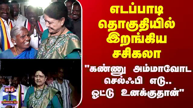 எடப்பாடி தொகுதியில் சசிகலா வாக்கு சேகரிப்பு சேலம் மாவட்டம் எடப்பாடியில் அனைத்திந்திய புரட்சித் தலைவர் மக்கள் முன்னேற்றக் கழக பொதுச்செயலாளர் சசிகலா மக்களை சந்தித்து வாக்கு சேகரிப்பில் ஈடுபட்டார்... அதனை காணலாம்...