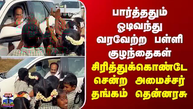 பார்த்ததும் ஓடிவந்து வரவேற்ற பள்ளி குழந்தைகள் - சிரித்துக்கொண்டே சென்ற அமைச்சர் தங்கம் தென்னரசு