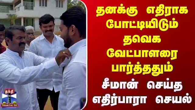 Seeman | Karaikudi | தனக்கு எதிராக போட்டியிடும் தவெக வேட்பாளரை பார்த்ததும் சீமான் செய்த எதிர்பாரா செயல்