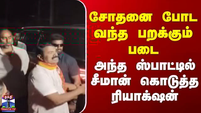 பறக்கும் படை அதிகாரிகளிடம் சரமாரியாக கேள்வி எழுப்பிய சீமான் சிவகங்கை மாவட்டம் காரைக்குடியில் தனது காரை சோதனையிட முயன்ற தேர்தல் பறக்கும் படை அதிகாரிகளிடம் நாம் தமிழர் கட்சியின் ஒருங்கிணைப்பாளர் சீமான் சரமாரியாக கேள்வி எழுப்பினார். புதுவயல் பகுதியில் பிரச்சாரத்தை முடித்துவிட்டு தனது காரில் சீமான் வந்து கொண்டிருந்தார். அப்போது இந்த சம்பவம் அரங்கேறியது.