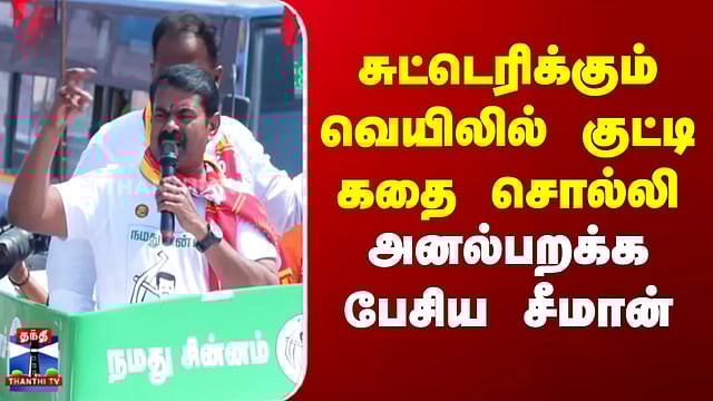 சுட்டெரிக்கும் வெயிலில் குட்டி கதை சொல்லி அனல்பறக்க பேசிய சீமான்