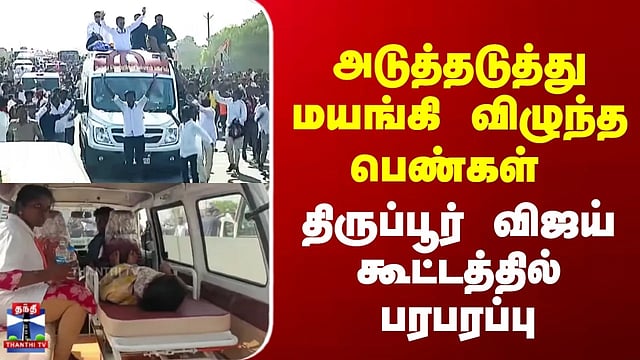TVK Vijay | Tiruppur | அடுத்தடுத்து மயங்கி விழுந்த பெண்கள் | திருப்பூர் விஜய் கூட்டத்தில் பரபரப்பு
