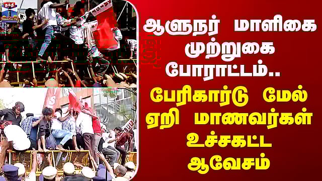 Student Protest | ஆளுநர் மாளிகை முற்றுகை போராட்டம் - பேரிகார்டு மேல் ஏறி மாணவர்கள் உச்சகட்ட ஆவேசம் #governoroffice #studentprotest #chennai #policearrest "கல்வியை பாதுகாப்போம், ஆளுநரை நிராகரிப்போம்" என்ற கோரிக்கையை வலியுறுத்தி அனைத்திந்திய மாணவர் பெருமன்றம் சார்பில் ஆளுநர் மாளிகை முற்றுகை போராட்டம் சென்னை பனகல் மாளிகையில் இருந்து தொடங்கிய நிலையில், அனைவரும் கைது செய்யப்பட்டுள்ளனர்...