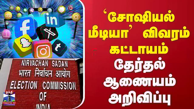 'சோஷியல் மீடியா' விவரம் கட்டாயம் - தேர்தல் ஆணையம் அறிவிப்பு #SocialMedia #thanthitv #election2026 #electioncommission வேட்பாளர்களுக்கு புதிய கட்டுப்பாடுகள் - தேர்தல் ஆணையம் அதிரடி தமிழகம் உள்ளிட்ட 5 மாநிலங்களுக்குச் சட்டப்பேரவை தேர்தல் அறிவிக்கப்பட்டுள்ள நிலையில், வேட்பாளர்களுக்கு இந்தியத் தேர்தல் ஆணையம் புதிய கட்டுப்பாடுகளை விதித்துள்ளது.