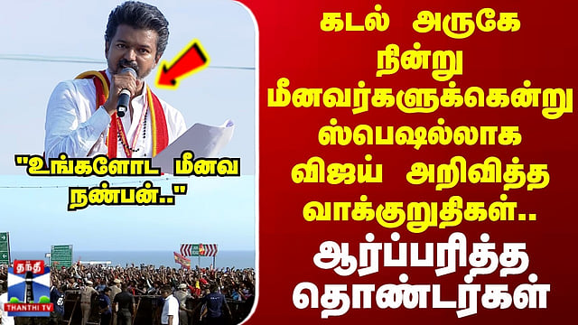 "உங்களோட மீனவ நண்பன்.." கடல் அருகே நின்று மீனவர்களுக்கென்று ஸ்பெஷல்லாக விஜய் அறிவித்த வாக்குறுதிகள்.. ஆர்ப்பரித்த தொண்டர்கள் #tvkvijay #vijay #tvk #kanniyakumari #vijaycampaign #election2026 #thanthitv