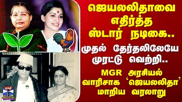 ஜெயலலிதாவை எதிர்த்த ஸ்டார் நடிகை.. முதல் தேர்தலிலேயே முரட்டு வெற்றி.. #admk #tnelection #mgr #jayalalitha #mkarunanidhi #dmk #thanthitv 1989 - முதல் தேர்தலிலேயே ஜெயலலிதாவை எதிர்த்த ஸ்டார் நடிகை ஜானகி இரைட்டை புறா சின்னத்திலும், ஜெயலலிதா சேவல் சின்னத்திலும் பலப்பரீட்சை