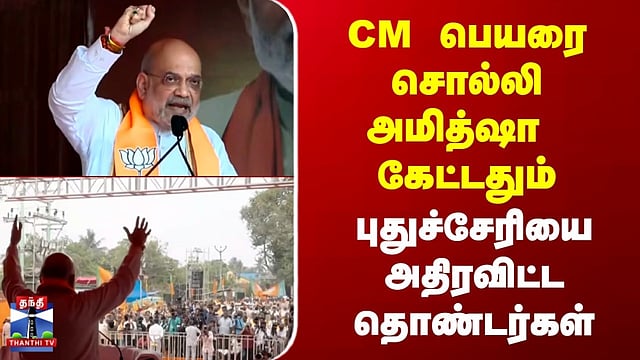 Amit Shah | Puducherry | BJP | CM பெயரை சொல்லி அமித்ஷா கேட்டதும் புதுச்சேரியை அதிரவிட்ட தொண்டர்கள் #amitshah #puducherry #BJP #Election2026 #puducherryelection2026 #thanthitv "புதுச்சேரியில் மீண்டும் என்டிஏ கூட்டணி ஆட்சி அமைய வேண்டும்" புதுச்சேரியில் மத்திய உள்துறை அமைச்சர் அமித்ஷா வாக்கு சேகரிப்பு