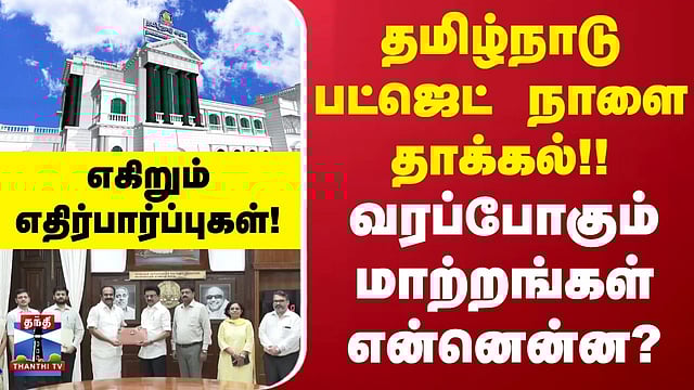 தமிழ்நாடு பட்ஜெட் நாளை தாக்கல்!! எகிறும் எதிர்பார்ப்புகள்! வரப்போகும் மாற்றங்கள் என்னென்ன? #tngovt #thanthitv #budget #mkstalin #DMK #ThangamThenarasu தமிழக அரசின் இடைக்கால பட்ஜெட்டை நிதி அமைச்சர் தங்கம் தென்னரசு, நாளை சட்டப் பேரவையில் தாக்கல் செய்ய உள்ளார். பட்ஜெட் தாக்கலுக்காக, நாளை சட்டப் பேரவை கூடுகிறது. தமிழகத்தில் வரும் ஏப்ரல் மாதம் சட்டப் பேரவைத் தேர்தல் நடைபெறும் என்று எதிர்பார்க்கப்படுகிறது. இந்த சூழலில், மக்களை கவரும் பல்வேறு சலுகை அறிவிப்புகள் பட்ஜெட்டில் வெளியாகலாம் என எதிர்பார்க்கப்படுகிறது.