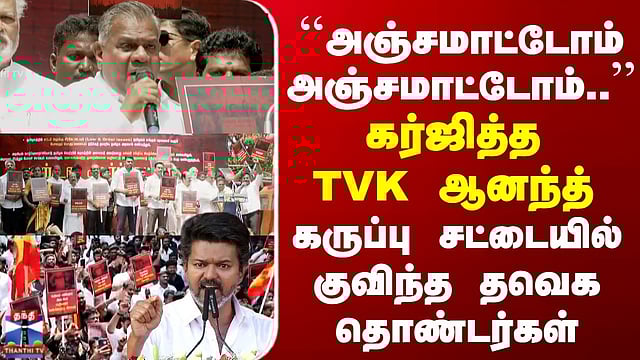 TVK Vijay | Protest | கர்ஜித்த TVK ஆனந்த் | கருப்பு சட்டையில் குவிந்த தவெக தொண்டர்கள் #TVKVijay #protest #chennai #thanthitv சாதிவாரி கணக்கெடுப்பு, சட்டம் ஒழுங்கு பிரச்சினை - தவெக ஆர்ப்பாட்டம் தமிழகத்தில் சாதிவாரி கணக்கெடுப்பை நடத்த கோரி ஆர்ப்பாட்டம் சட்டம், ஒழுங்கு சீர்கேட்டை கண்டித்தும் தவெக ஆர்ப்பாட்டம் சாதிவாரி கணக்கெடுப்பு, சட்டம் ஒழுங்கு பிரச்சினையை முன்வைத்து தவெக சார்பில் மாவட்டம் தோறும் ஆர்ப்பாட்டம் நடைபெற்று வருகிறது... சென்னை மாவட்ட ஆட்சியர் அலுவலகம் அருகே போராட்டம் நடைபெற்று வருகிறது...