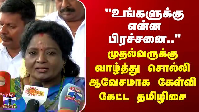 "உங்களுக்கு என்ன பிரச்சனை.." - முதல்வருக்கு வாழ்த்து சொல்லி ஆவேசமாக கேள்வி கேட்ட தமிழிசை #tamilisaisoundararajan #bjp #thanthitv தமிழக முதல்வர் மு.க.ஸ்டாலினுக்கு பிறந்தநாள் வாழ்த்து தெரிவித்த பாஜக மூத்த தலைவர் தமிழிசை சௌந்தரராஜன், சென்னை வருகை தந்த பிரதமர் நரேந்திர மோடியை வரவேற்பதில் முதல்வருக்கு என்ன பிரச்சனை என கேள்வியும் எழுப்பியுள்ளார்.
