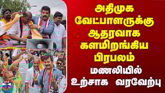AIADMK | Ravi Mariya | அதிமுக வேட்பாளருக்கு ஆதரவாக களமிறங்கிய பிரபலம்..மணலியில் உற்சாக வரவேற்பு #AIADMK #RaviMariya #Kuppan #Thiruvotriyur சென்னை திருவொற்றியூர் தொகுதியில் போட்டியிடும் அதிமுக வேட்பாளர் குப்பன், அந்த தொகுதியில் இன்று தீவிர பிரசாரம் மேற்கொண்டார். திருவொற்றியூர் தொகுதிக்கு உட்பட்ட மணலி மற்றும் அதன் சுற்றுவட்டாரப் பகுதிகளில், திறந்தவெளி வாகனத்தில் நின்றபடி வேட்பாளர் குப்பன் இரட்டை இலை சின்னத்திற்கு வாக்கு சேகரித்தார். இவருக்கு ஆதரவாக பிரபல இயக்குனரும், நடிகருமான ரவி மரியா பிரசாரம் மேற்கொண்டார். வழிநெடுகிலும் திரண்டிருந்த பொதுமக்கள் வேட்பாளருக்கும், நடிகர் ரவி மரியாவுக்கும் உற்சாக வரவேற்பு அளித்தனர். அதிமுக ஆட்சியின் சாதனைகளை எடுத்துக்கூறிய ரவி மரியா, குப்பனுக்கு பெருவாரியான வாக்குகள் அளிக்குமாறு வேண்டுகோள் விடுத்தார்.