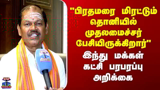"பிரதமரை மிரட்டும் தொனியில் முதலமைச்சர் பேசியிருக்கிறார்" - இந்து மக்கள் கட்சி வெளியிட்ட பரபரப்பு அறிக்கை #Delimitation #cmstalin #thanthitv 1950, 60களில் பார்த்த திமுகவை மீண்டும் பார்க்க வேண்டி வரும் என்று தொகுதி மறுவரையறை குறித்து கண்டனம் தெரிவித்திருந்த முதல்வர் ஸ்டாலின், மத்திய அரசையும் பிரதமர் மோடியையும் மிரட்டும் தொனியில் பேசியிருப்பதாக, இந்து மக்கள் கட்சி வன்மையான கண்டனத்தைத் தெரிவித்துள்ளது அக்கட்சி வெளியிட்டுள்ள அறிக்கையில், தேர்தலில் தங்களுக்குப் பலத்த அடி விழும் என்பதை உணர்ந்தே முதல்வர் ஸ்டாலின் இத்தகைய அறிக்கைகளை வெளியிட்டு வருவதாகக் குற்றம்சாட்டியுள்ளது. 1962-ல் 'அடைந்தால் திராவிட நாடு, இல்லையேல் சுடுகாடு' என்று வீர வசனம் பேசிய திமுக, மத்திய அரசு கொண்டு வந்த 16-வது அரசியல் சாசனத் திருத்தச் சட்டத்திற்குப் பயந்து, தனது பிரிவினைவாதக் கோரிக்கையைக் கைவிட்டதாக இந்து மக்கள் கட்சி அறிக்கையில் சுட்டிக்காட்டியுள்ளது.