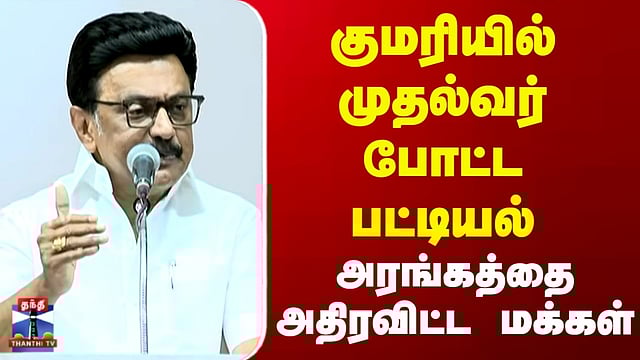 குமரியில் முதல்வர் போட்ட பட்டியல்.. அரங்கத்தை அதிரவிட்ட மக்கள் #cmstalin #mkstalin #kanniyakumari #nagarkovil #fisherman #thanthitv ரூ.1,785 கோடி திட்டங்களை தொடங்கி வைக்கும் முதலமைச்சர் ஸ்டாலின் நாகர்கோவிலில் நடைபெற்று வரும் அரசு நலத்திட்ட உதவிகள் வழங்கும் விழாவில் முதலமைச்சர் ஸ்டாலின் உரையாற்றி வருகிறார்... அதனை காணலாம்...