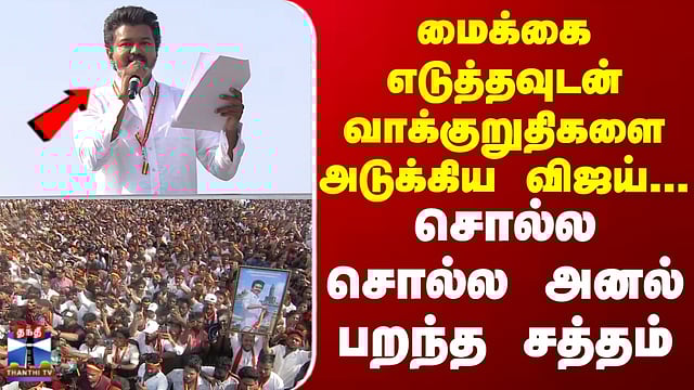 மைக்கை எடுத்தவுடன் வாக்குறுதிகளை அடுக்கிய விஜய்... சொல்ல சொல்ல அனல் பறந்த சத்தம்