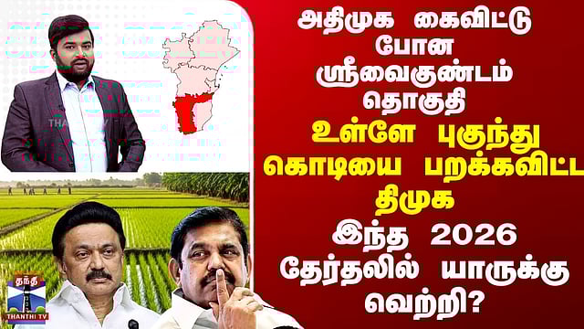அதிமுக கைவிட்டு போன ஸ்ரீவைகுண்டம் தொகுதி.. உள்ளே புகுந்து கொடியை பறக்கவிட்ட திமுக #admk #dmk #tnelection2026 #election2026 #politics #thanthitv ஸ்ரீவைகுண்டம் சட்டப்பேரவை தொகுதி தூத்துக்குடி மாவட்டத்துல... சாயர்புரம் , ஸ்ரீவைகுண்டம், பெருங்குளம், ஏரல், ஆழ்வார்திருநகரி பகுதிகளை உள்ளடக்கிய தொகுதி.