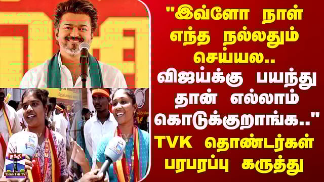 #TVKVijay | #TVKVijayMeeting | #Thanjavur | #TVKMeeting | #TNPolitics | #ThanthiTV TVK Vijay Meeting | "இவ்ளோ நாள் எந்த நல்லதும் செய்யல.. விஜய்க்கு பயந்து தான் எல்லாம் கொடுக்குறாங்க.." - தவெக தொண்டர்கள் பரபரப்பு கருத்து தவெக தலைவர் விஜய்யின் தஞ்சை நிர்வாகிகள் சந்திப்பு பேச்சு குறித்து தொண்டர்கள் தெரிவித்த கருத்தை காணலாம்...