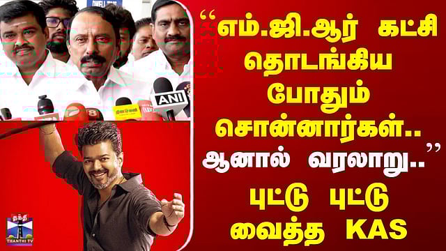 TVK Vijay | "எம்.ஜி.ஆர் கட்சி தொடங்கிய போதும் சொன்னார்கள்.. ஆனால் வரலாறு.." | புட்டு புட்டு வைத்த KAS #TVKVijay #KAS #TVKsengottaiyan #tnelections2026 #TNpolitics #thanthitv #miccheck "நான் சொல்லாமல் இருக்கும் வரை நல்லது.." "பேசும் போதே டெல்லியில் இருந்து வந்துவிடுகிறார்கள்.." கோவையில் செய்தியாளர்களிடம் பேசிய தவெக நிர்வாகி செங்கோட்டையன், ஒவ்வொருவரிடமும் கூட்டணி பேசும் போதெல்லாம் டெல்லியில் இருந்து வந்து விடுகிறார்கள் என்று வேதனையுடன் தெரிவித்தார்...