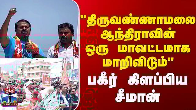 Seeman | Thiruvannamalai | "திருவண்ணாமலை ஆந்திராவின் ஒரு மாவட்டமாக மாறிவிடும்" - பகீர் கிளப்பிய சீமான் #Thiruvannamalai #Seeman #election2026 #dmk #thanthitv திமுக ஆட்சிக்கு வந்தால் திருவண்ணாமலை மாவட்டம் ஆந்திராவின் ஒரு மாவட்டமாக மாறிவிடும் என சிமான் கூறியுள்ளார். ஊழல் மற்றும் லஞ்சமற்ற ஆட்சியை அமைக்க வேண்டும் எனக் கேட்டுக்கொண்ட சீமான், மாற்றம் என்பது வெறும் சொல் அல்ல, செயல் என ஆவேசமாக பரப்புரையில் பேசியுள்ளார். திருவண்ணாமலையில் நாம் தமிழர் கட்சியின் ஒருங்கிணைப்பாளர் சீமான் தேர்தல் பரப்புரையில் ஈடுபட்டார்.