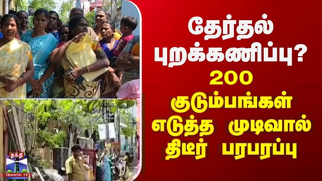 TN Election | Protest | தேர்தல் புறக்கணிப்பு? - 200 குடும்பங்கள் எடுத்த முடிவால் திடீர் பரபரப்பு #election2026 #protest #chennai #thanthitv தேர்தல் புறக்கணிப்பு? - 200 வீடுகளில் கருப்புக் கொடி கட்டிய மக்கள் சட்டமன்றத் தேர்தலைப் புறக்கணிக்கப் போவதாக கூறி சென்னை சோழிங்கநல்லூர் தொகுதிக்குட்பட்ட துரைப்பாக்கம் பகுதியில், 200-க்கும் மேற்பட்ட வீடுகளில் கருப்புக் கொடியை கட்டப்பட்ட சம்பவம் பரபரப்பை ஏற்படுத்தியுள்ளது. அறிஞர் அண்ணா நகரில் 35 ஆண்டுகளுக்கும் மேலாக மக்கள் வசித்து வரும் நிலையில், இந்த இடம் முழுவதும் ஒரு நபரின் பெயரில் பட்டா பதிவு செய்யப்பட்டதாக கூறப்படுகிறது. இது தொடர்பாக நீதிமன்றத்தில் வழக்கு நிலுவையில் உள்ள நிலையில், வீடுகளைக் காலி செய்யச் சொல்லி அதிகாரிகள் நெருக்கடி கொடுப்பதாகப் பொதுமக்கள் கூறியுள்ளனர். மேலும் தங்களுக்குத் தனித்தனியாகப் பட்டா வழங்காவிட்டால், தேர்தலை முற்றிலுமாகப் புறக்கணிப்போம் எனவும் எச்சரிக்கை விடுத்துள்ளனர்.