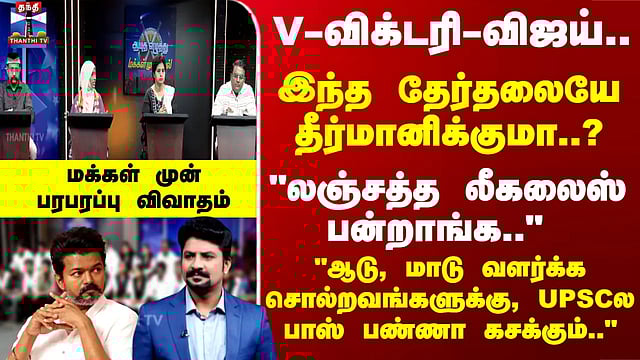 V-விக்டரி-விஜய்.. இந்த தேர்தலையே தீர்மானிக்குமா..? மக்கள் முன்பரபரப்பு விவாதம்