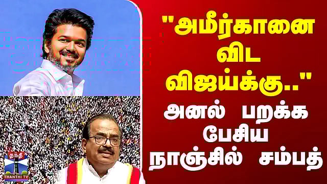 அமீர்கானை விட விஜய்க்கு ரசிகர்கள் அதிகம் - நாஞ்சில் சம்பத் அமீர்கானை விட லட்சக்கணக்கான ரசிகர்களை கையில் வைத்திருப்பவர் விஜய் தான் என்று தவெக தலைமை கழக பேச்சாளர் நாஞ்சில் சம்பத் தெரிவித்தார். திண்டுக்கல் மாவட்டம் வேடசந்தூரில் நடைபெற்ற தவெக பொதுக்கூட்டத்தில் பேசிய அவர், இவ்வாறு கூறினார்....