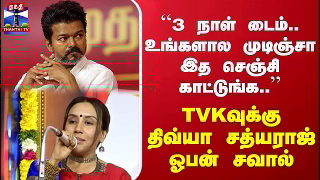 TVK Vijay | "3 நாள் டைம்..உங்களால முடிஞ்சா இத செஞ்சி காட்டுங்க"TVKவுக்கு திவ்யா சத்யராஜ் ஓபன் சவால்