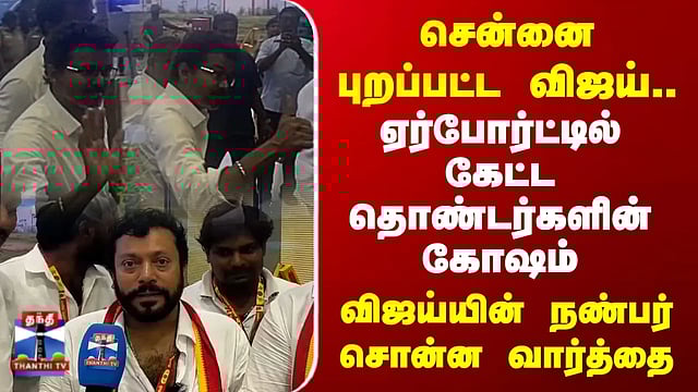 TVK Vijay | Campaign | சென்னை புறப்பட்ட விஜய்..ஏர்போர்ட்டில் கேட்ட தொண்டர்களின் கோஷம்
