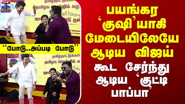TVK Vijay Dance Viral Video | பயங்கர `குஷி’யாகி மேடையிலேயே ஆடிய விஜய் பனையூர் தலைமை அலுவலகத்தில் நடைபெறும் தமிழக வெற்றி கழகத்தின் மூன்றாவது ஆண்டு தொடக்க விழாவில் கட்சியின் தலைவர் விஜய், பாடகர் வேல்முருகனுடன் நடனமாடினார்... அதனை காணலாம்...