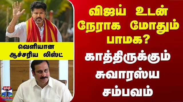 TVK | Vijay | PMK | விஜய் உடன் நேராக மோதும் பாமக..? காத்திருக்கும் சுவாரஸ்ய சம்பவம் சேலம் மேற்கு, தர்மபுரி, பென்னாகரம், விக்கிரவாண்டி, சோளிங்கர் தொகுதிகளில் பாமக போட்டியிடுகிறது... மயிலாடுதுறை, திருப்போரூர், உத்திரமேரூர், ஜெயங்கொண்டம், போளூர் தொகுதிகளிலும் பாமக களம் காண்கிறது... செஞ்சி, விருத்தாச்சலம், ரிஷிவந்தியம், காட்டுமன்னார் கோவில் தொகுதிகளில் பாமக போட்டியிடுகிறது... கீழ்வேளூர், பெரம்பூர், சேலம் வடக்கு, அம்பத்தூர் ஆகிய தொகுதிகளிலும் பாமக களம் காண்கிறது...