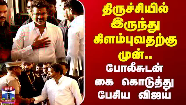 TVK Vijay | Trichy East | திருச்சியில் இருந்து கிளம்புவதற்கு முன்..போலீசுடன் கை கொடுத்து பேசிய விஜய்