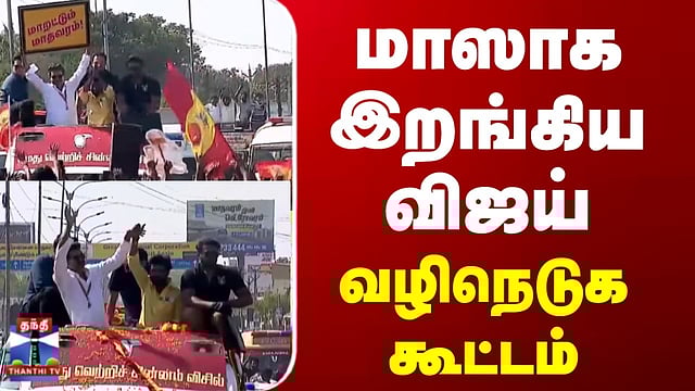 TVK Vijay | மாஸாக இறங்கிய விஜய்.. வழிநெடுக கூட்டம்