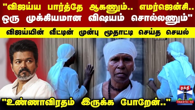 TVK Vijay Neelankarai House | விஜய்யின் வீட்டின் முன்பு மூதாட்டி செய்த செயல்.. பரபரப்பு காட்சி