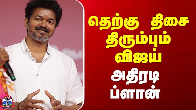 TVK Vijay Campaign | South India | தெற்கு திசை திரும்பும் விஜய் - அதிரடி ப்ளான் #tvk #vijaytvk #thanjavurtvkcampaign #thanthitv தஞ்சையை தொடர்ந்து தென் மாவட்டங்களுக்கு செல்லும் விஜய் தஞ்சாவூரைத் தொடர்ந்து தென்தமிழக மாவட்டங்களில் தமிழக வெற்றி கழக தலைவர் விஜய் சுற்றுப்பயணம் மேற்கொள்ள உள்ளதாக தகவல் வெளியாகியுள்ளது. மார்ச் இரண்டாவது வாரத்தில் திருநெல்வேலியிலும், அடுத்த வாரம் தூத்துக்குடியிலும் தவெக மக்கள் சந்திப்பு கூட்டத்தை மேற்கொள்ள திட்டமிட்டுள்ளதாக கூறப்படுகிறது. தேர்தல் நெருங்கி வரும் சூழலில் சட்டமன்ற தொகுதிகள் அதிகம் இருக்கும் மாவட்டங்களில் சந்திப்புகள் நடத்த ஏற்பாடு செய்யப்பட்டுள்ளதாகவும், மக்கள் சந்திப்பா நிர்வாகிகள் சந்திப்பா என்பது காவல்துறையின் அனுமதி கேட்ப முடிவு செய்யப்பட உள்ளதாகவும் தகவல் வெளியாகியுள்ளது.